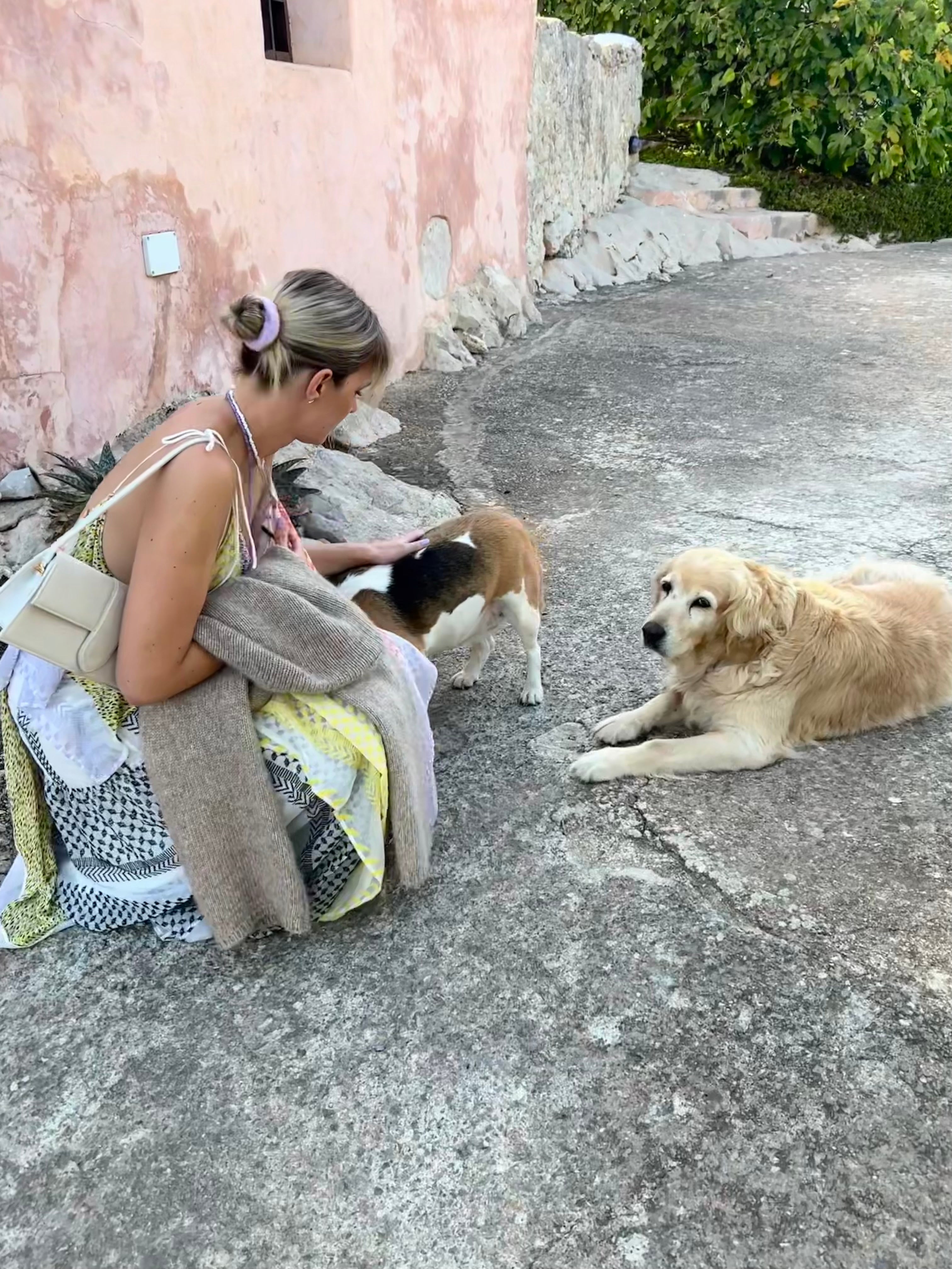 Liberta unter der griechischen Abendsonne mit Midi grau, Crochet-Cardigan & Linen Pants