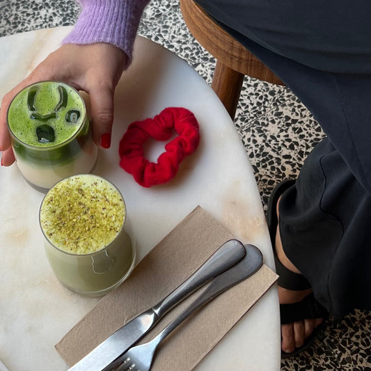 Karin Teigl mit Scrunchie am Strand in Kapstadt