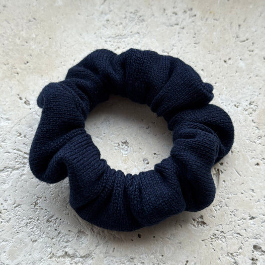 Olivia rundet ihren locker geflochtenen Zopf mit einem Maxi in Navy ab