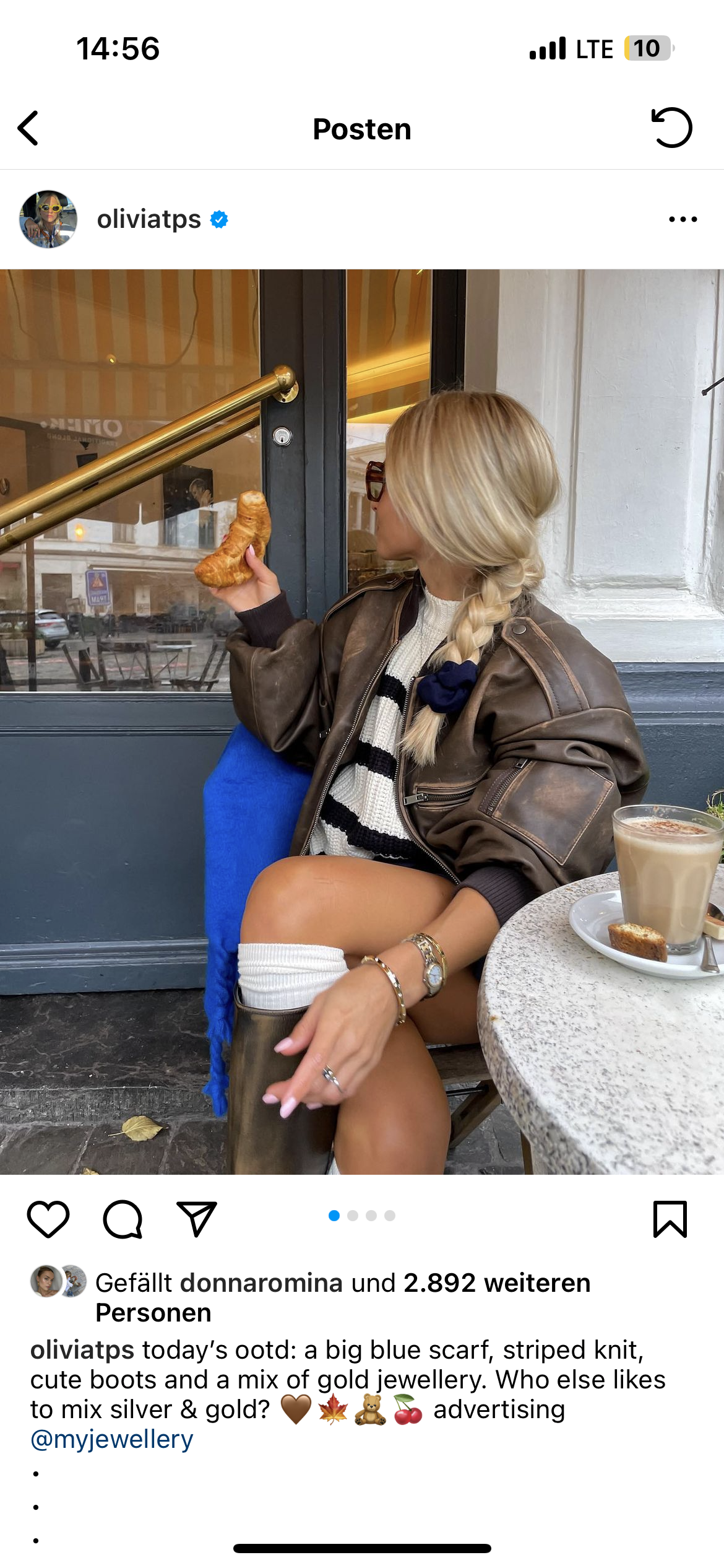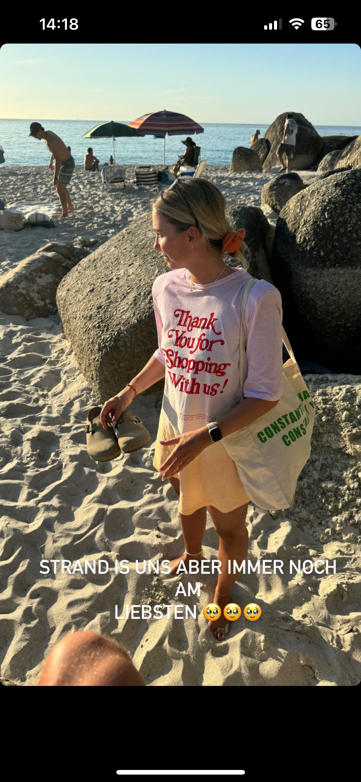 Jana wears Maxi Sand easily on her wrist with the classic Black&White look and Birkenstock Boston.