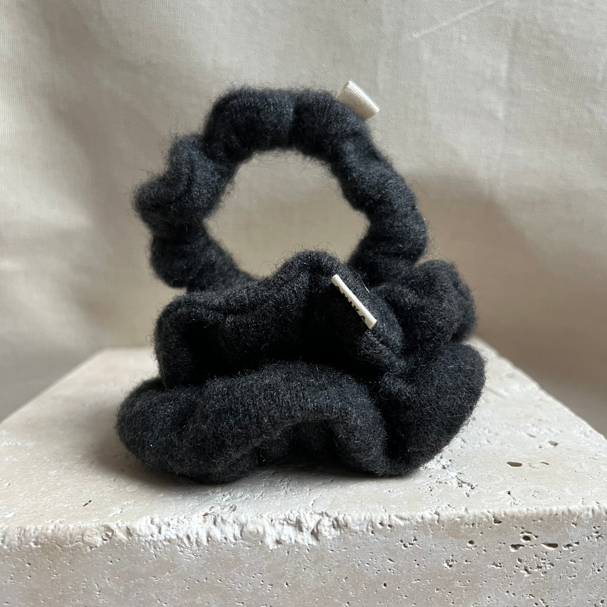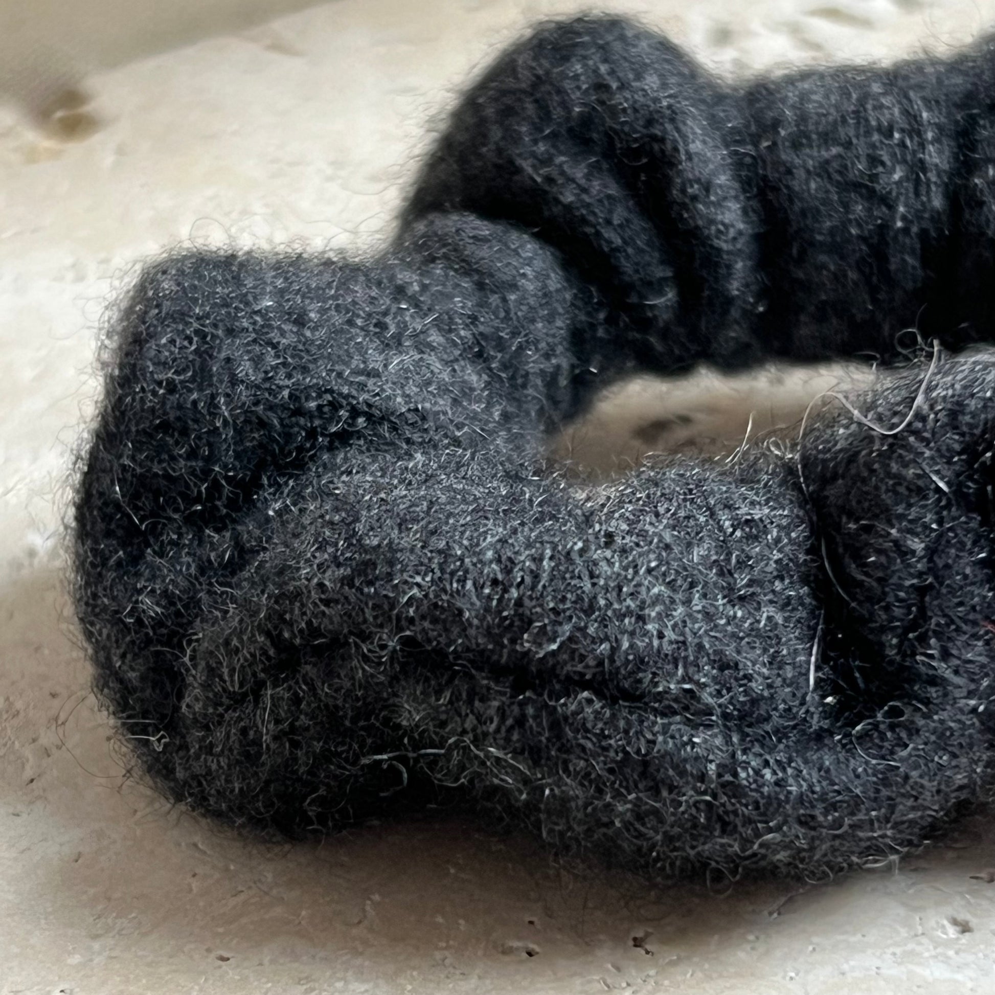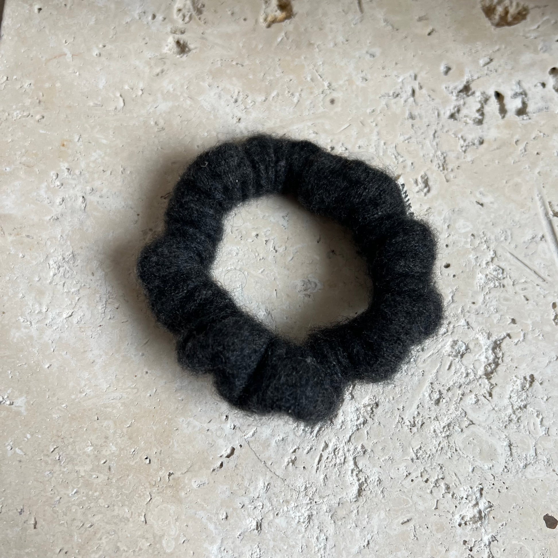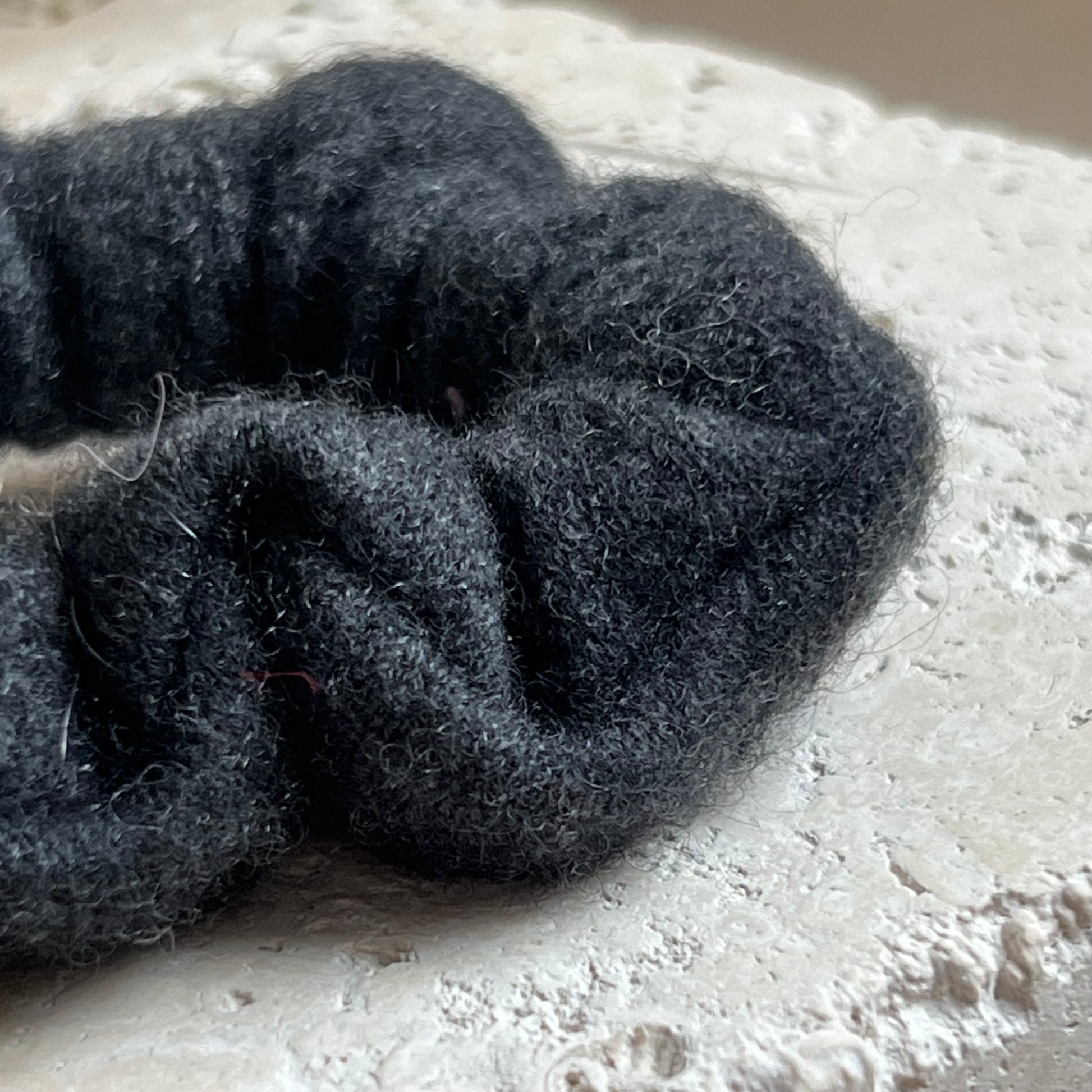 Diese Scrunchies stammen aus aus einem Pullover der Marke Repeat mit kleinen Löchern. Die prägnant fluffige Oberfläche haben diese Scrunchies da das Kaschmir gebürstet wurde.