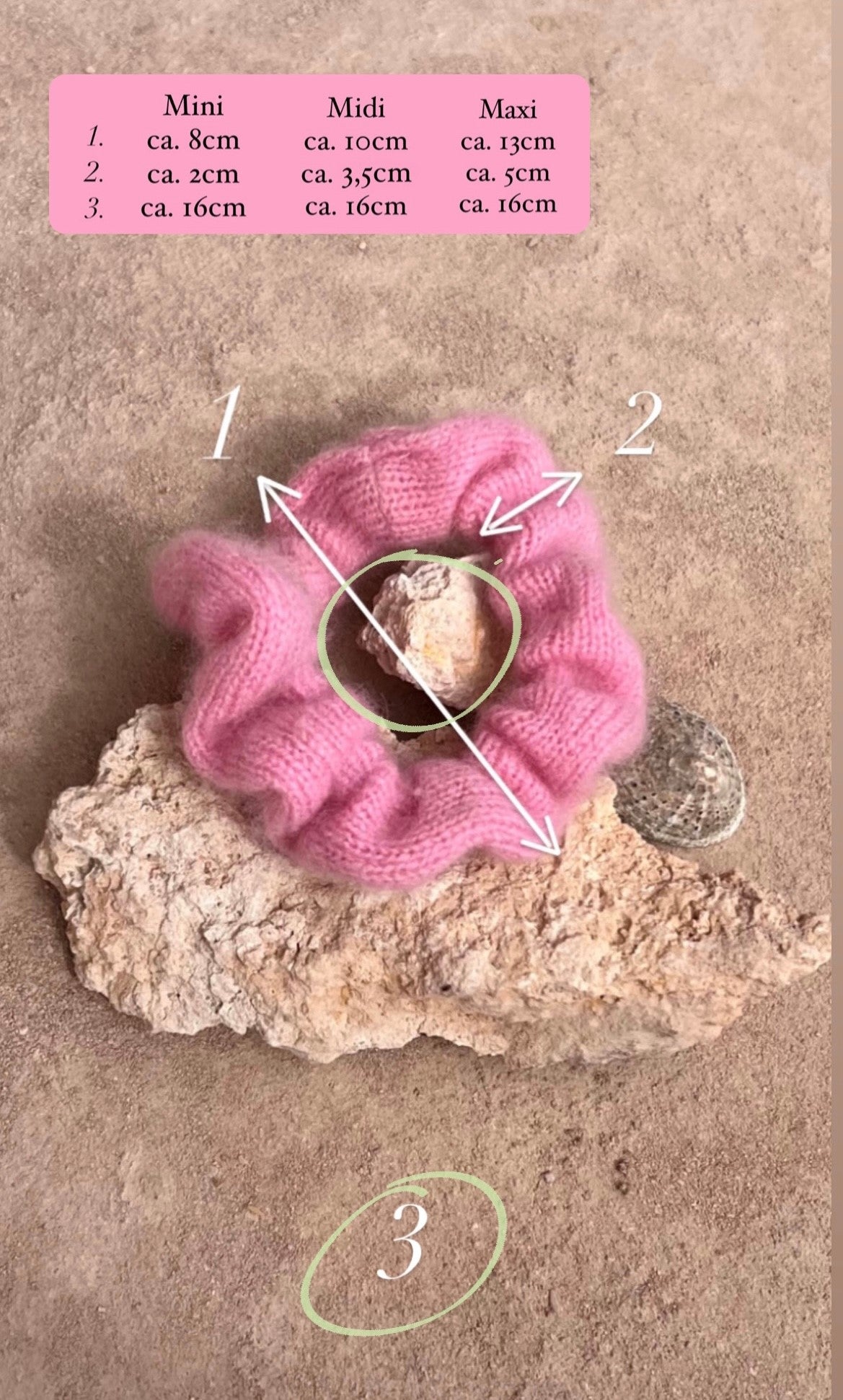 To find the right scrunchie for your hair structure and favorite hairstyle, the dimensions and the size guide will help you.