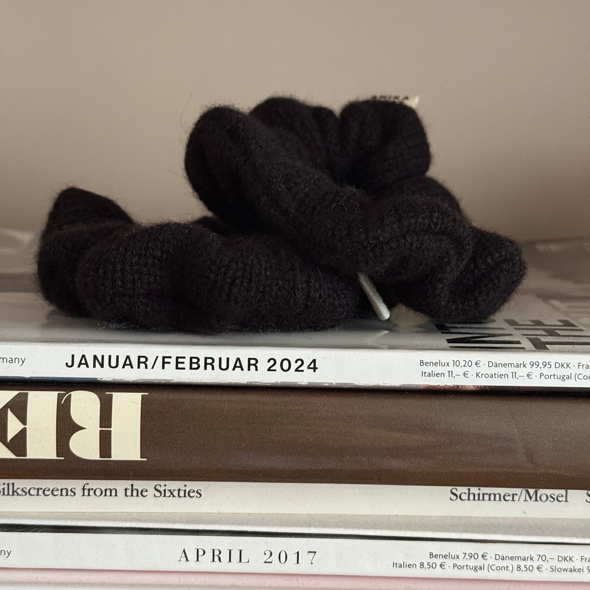 Tiefbraun wie süße Schokolade. Diese Scrunchies stammen aus einem Pullover der Marke Strenesse, der ein kleines Loch besaß.