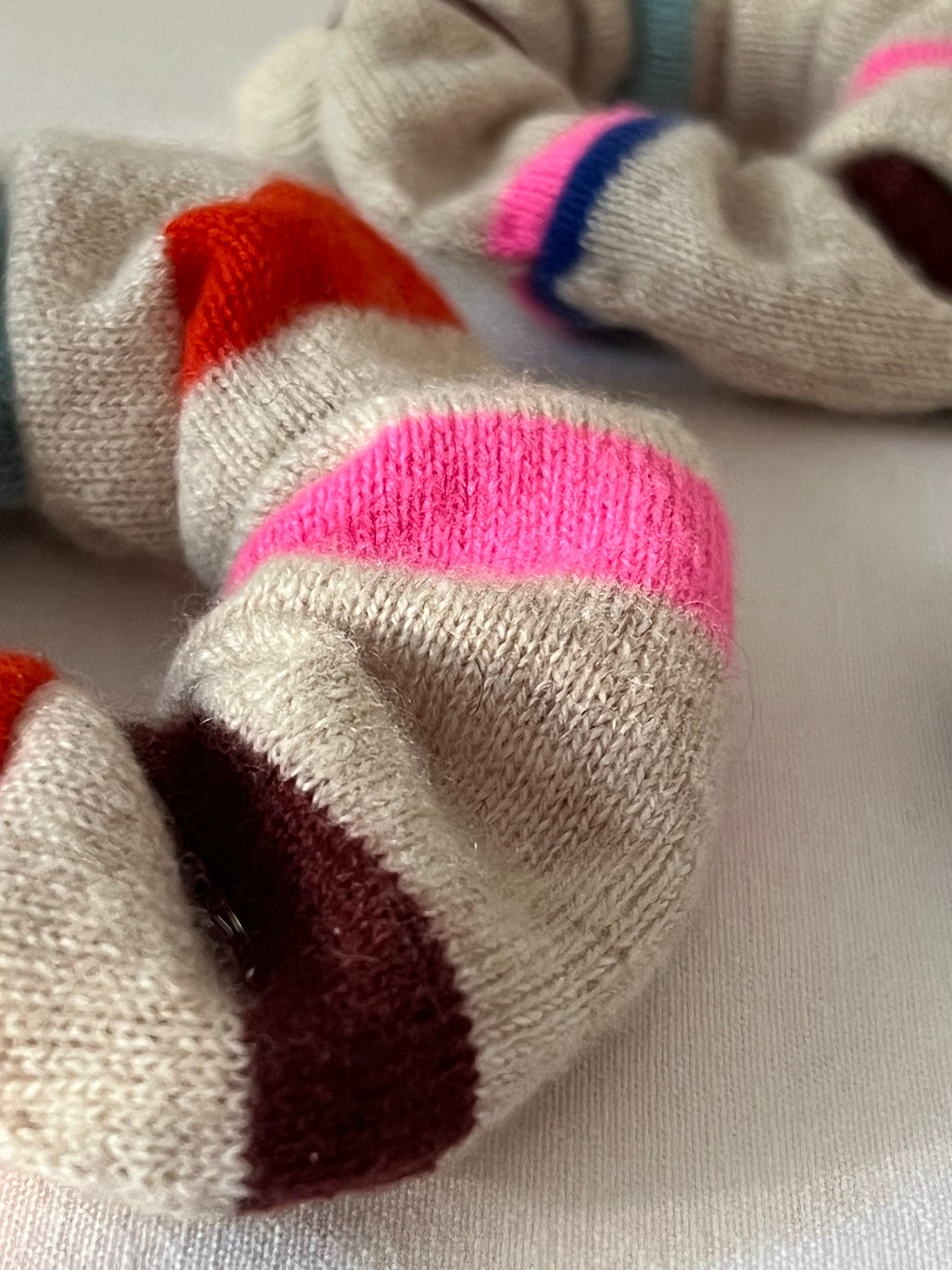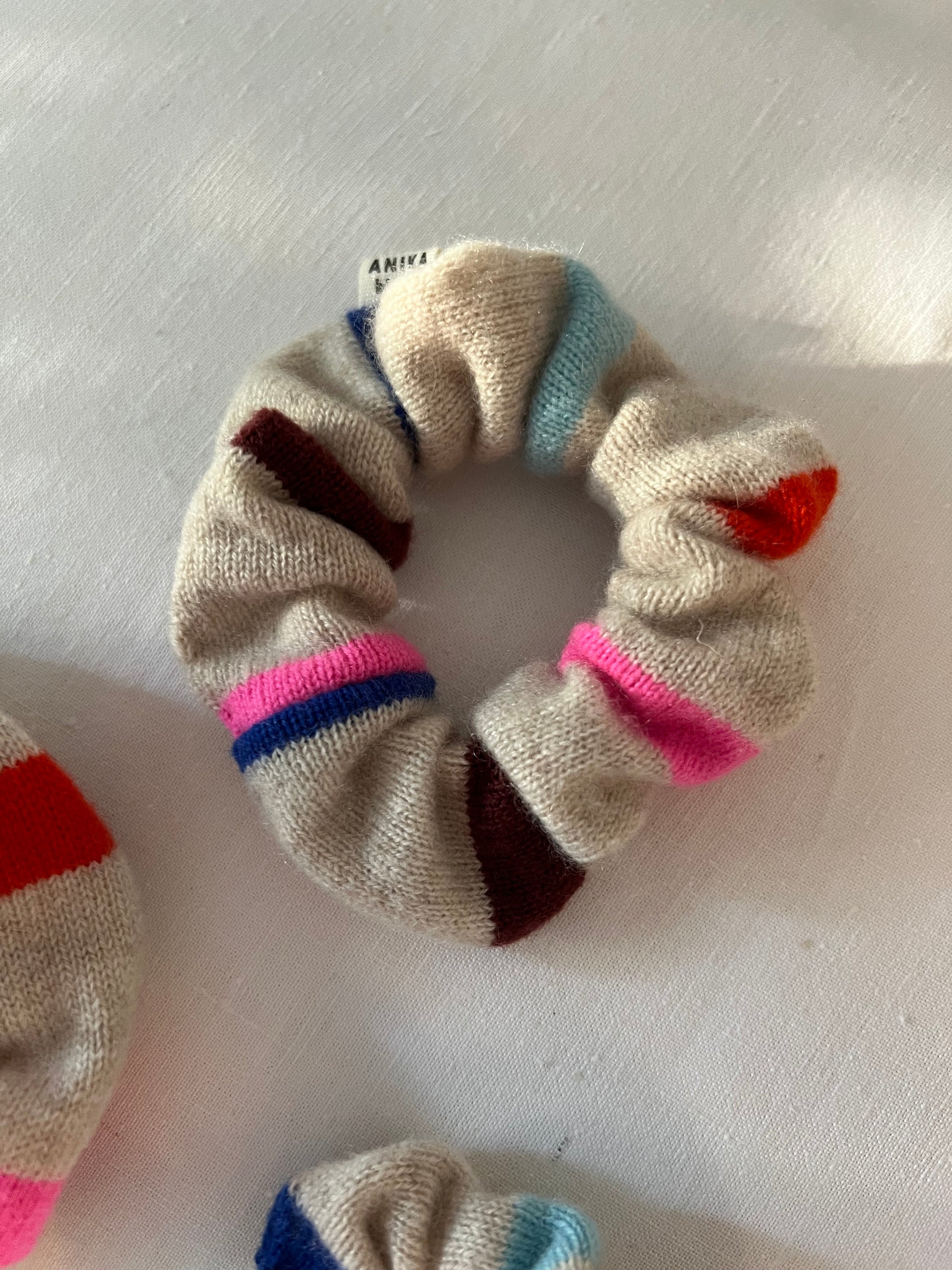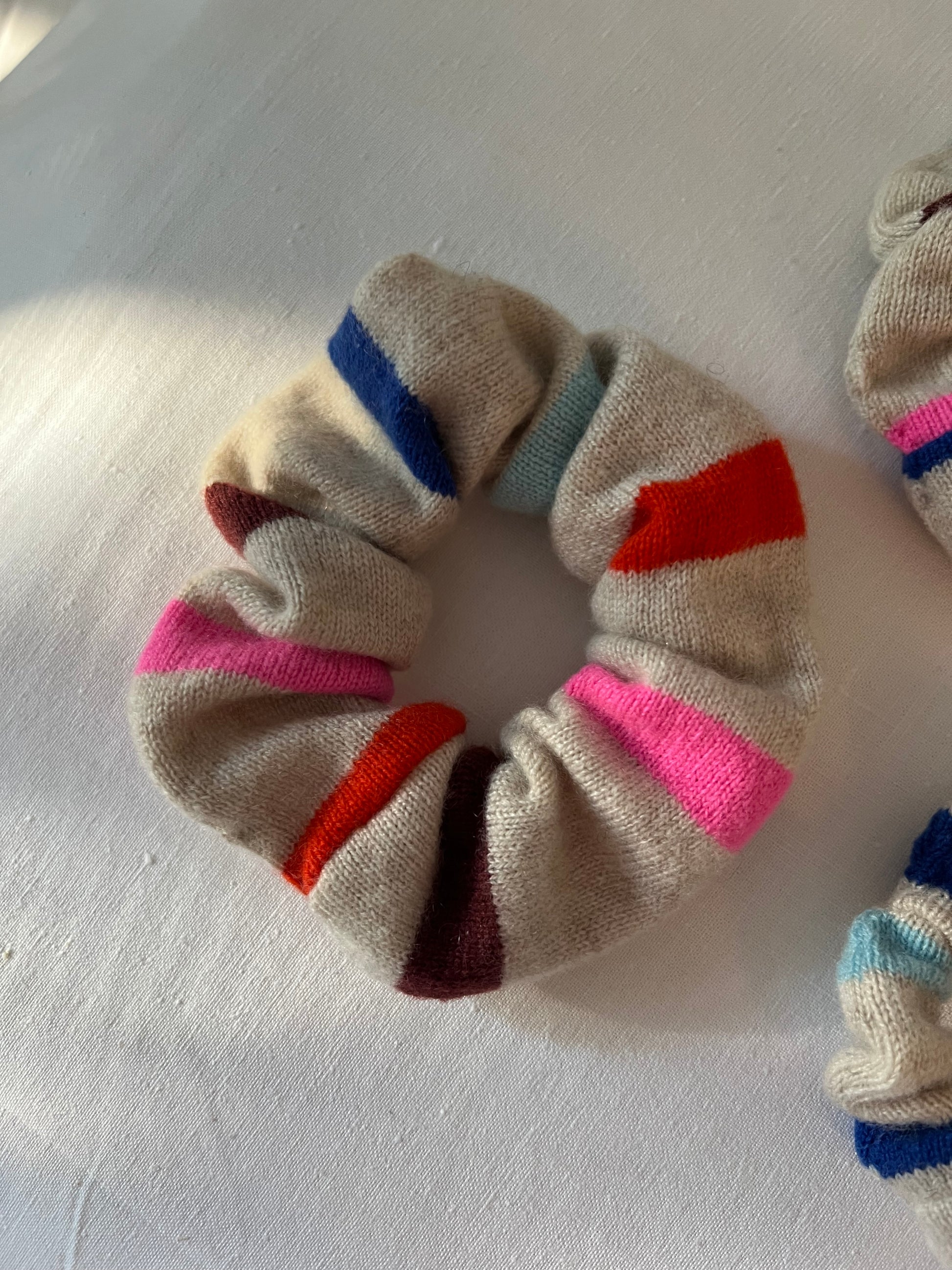 Jedes Scrunchie ist ein individuelles Produkt, das aus einem oder mehreren Kaschmirstücken in Handarbeit gefertigt wird. Leichte Abweichungen der Abmessungen und Optik sind deshalb möglich.